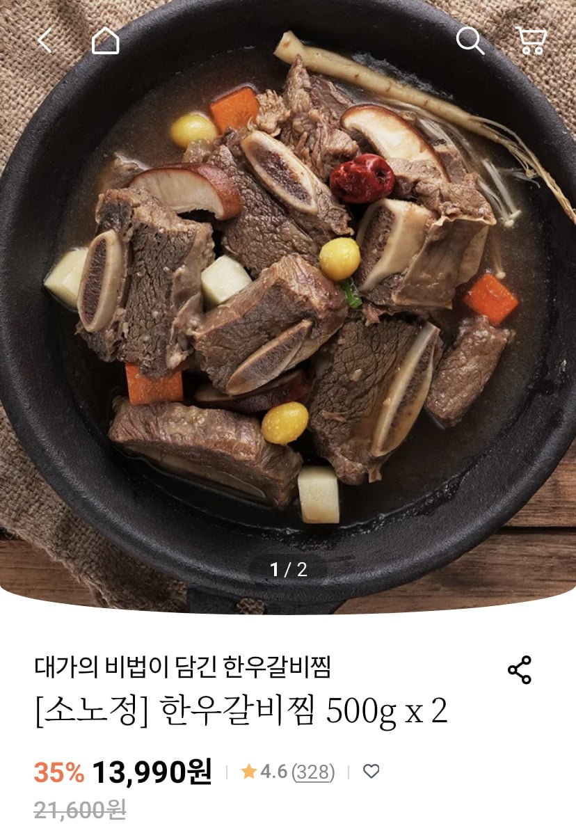 한우 갈비찜 500g 팩당 6,995원입니다.