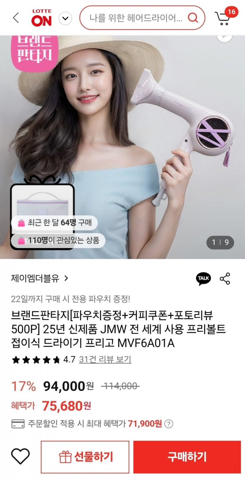 [롯데온]JMW 접이식 드라이기 프리고 MVF6A01A (71,900원/무료)