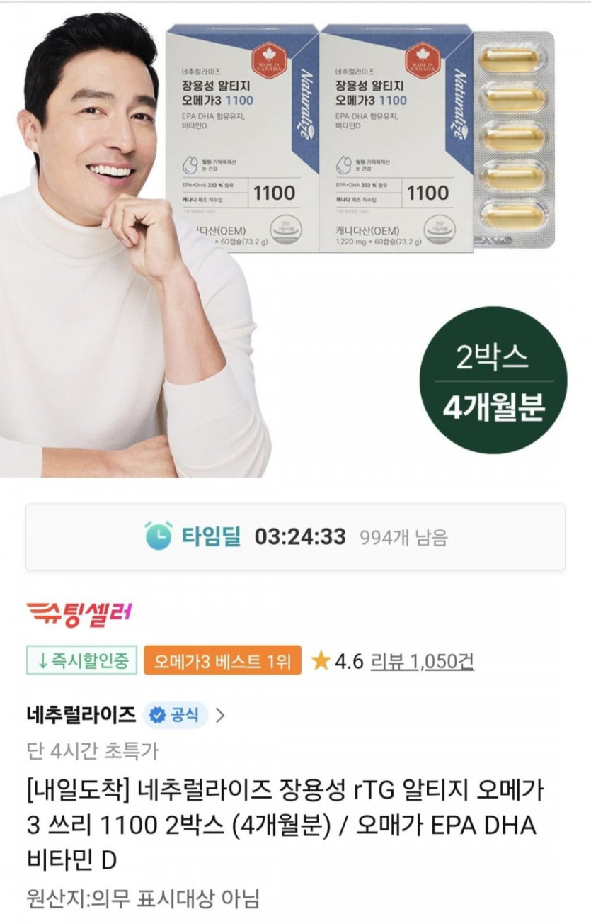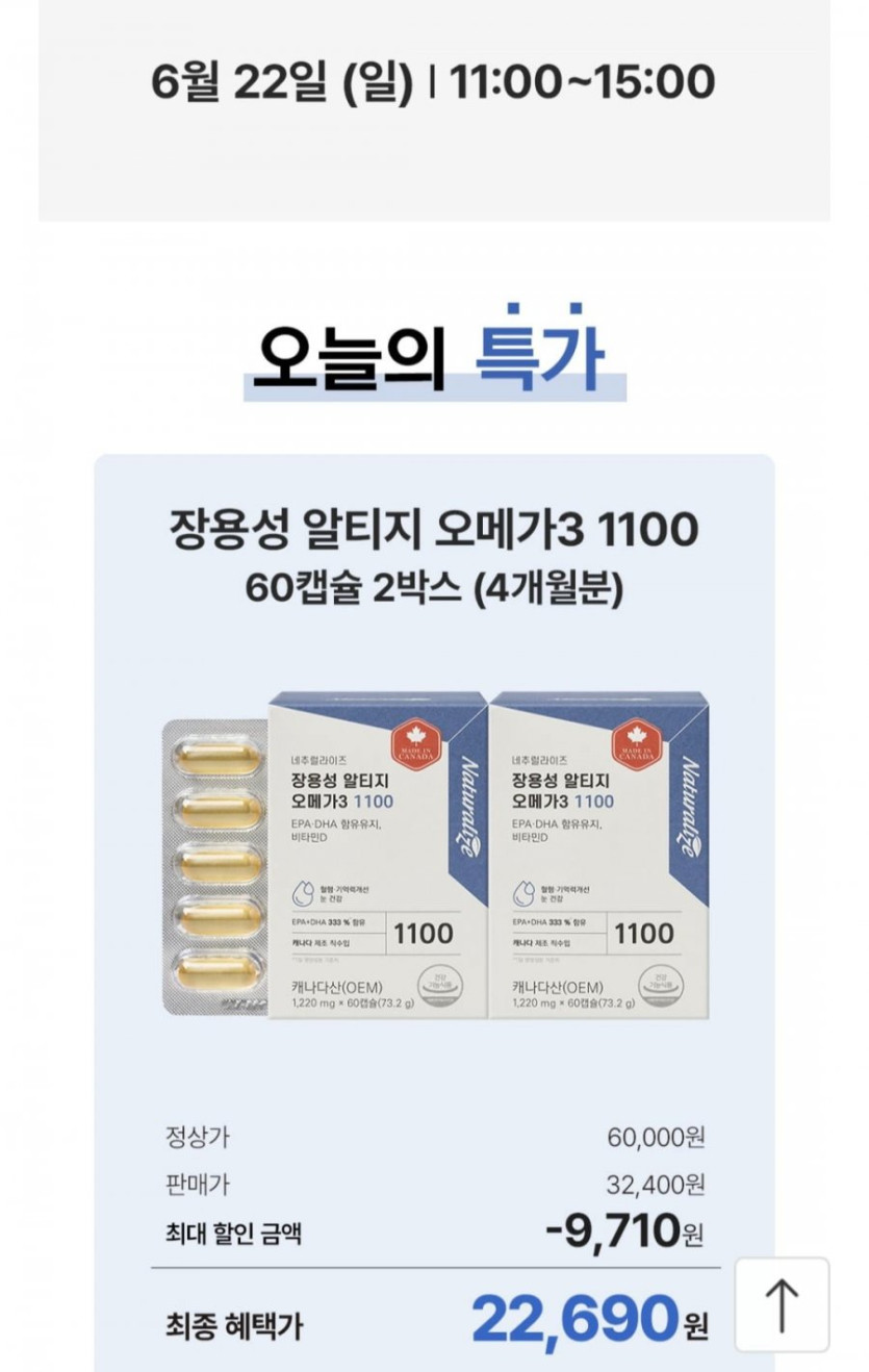 EPA+DHA 1,100mg로 함량좋고 하루한캡슐만