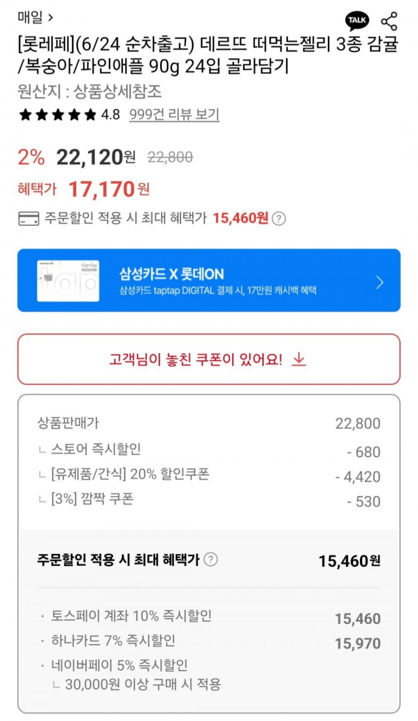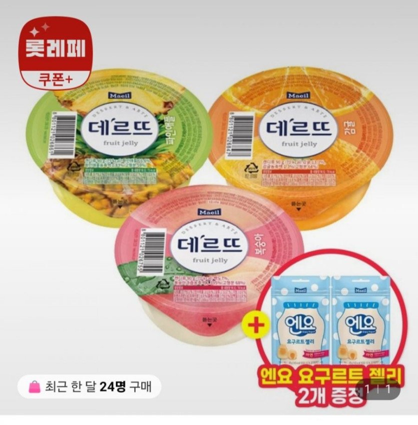 [롯데온]데르뜨 떠먹는젤리 3종 24입 골라담기+엔요 요구르트 2개 (토스시15,460원/무배)