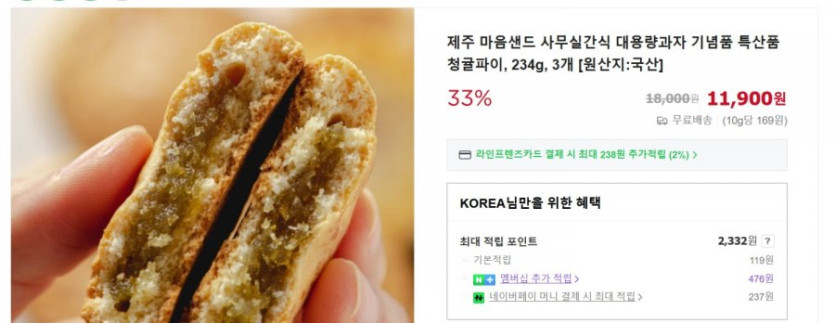 [네이버]제주 과자간식 청귤파이 3박스 (11,900원/무료)