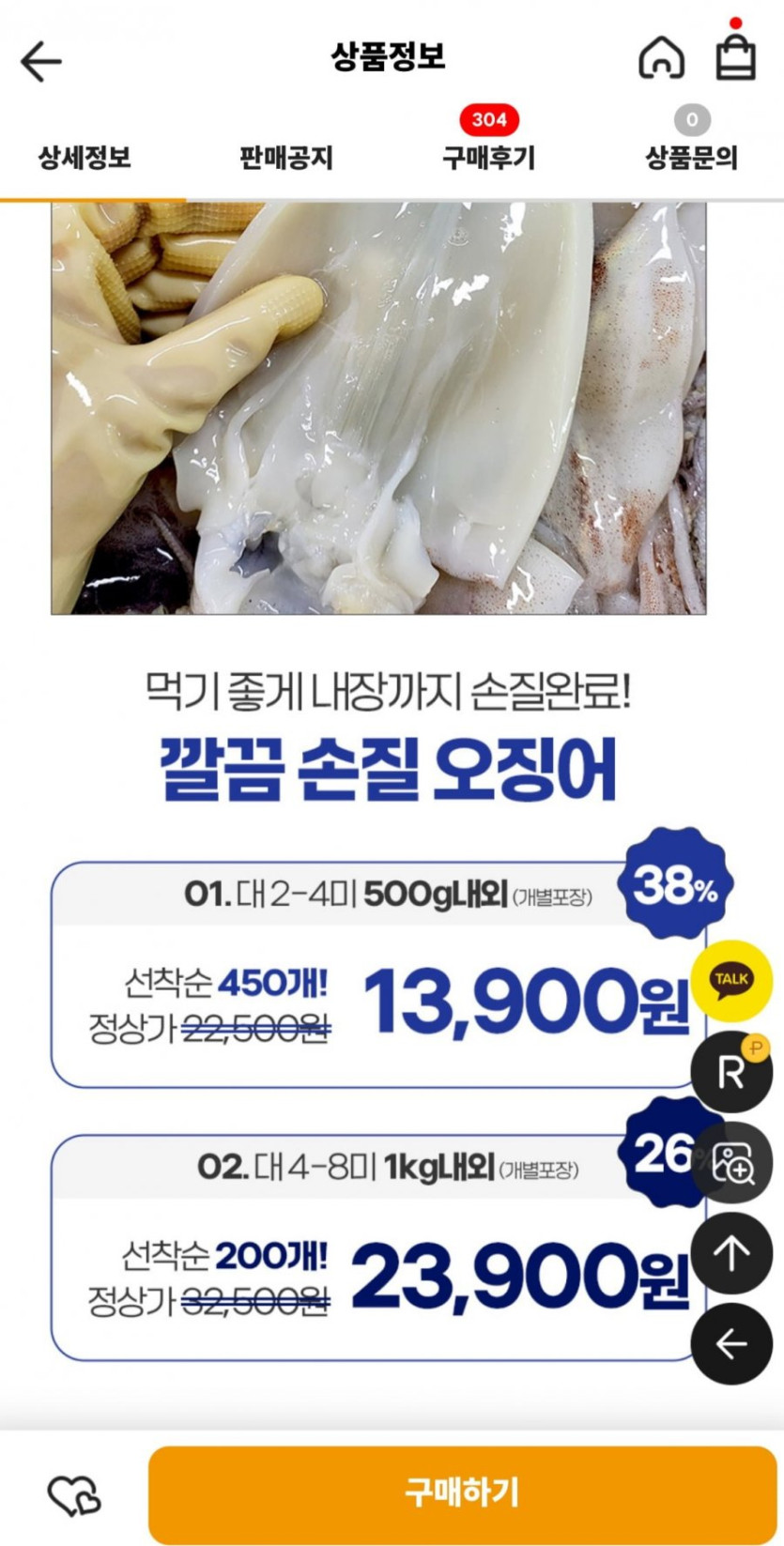 [맛남]손질오징어 500g~1kg (11,900원~/무배)