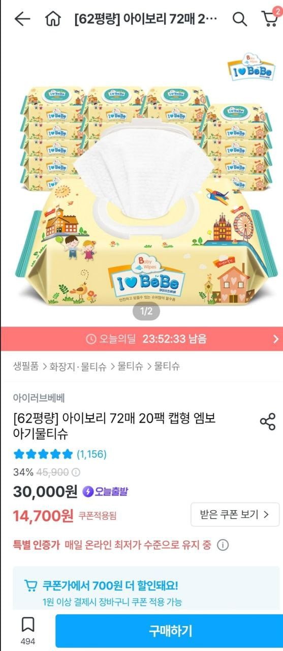 [오늘의집]아이보리 72매 20팩 캡형 엠보 아기물티슈 (12,600원/무료) 작성자 정보 하루 작성 작성일 2025.06.22 06:26 컨텐츠 정보 24 조회 목록 본문 토스결제시 12,600원 오늘의집 토스타겟 쿠폰 아직 안사용 하셨음 9,600원에도 구매 가능할 것 같아요! https://ozip.me/FaMkDfy?af 관련자료 이전 [11번가]리엔 흑모비책골드 염색약 90g 4개 (10,900원 / 무료배송) 작성일 2025.06.22 07:10 다음 [오늘의집]송월타올 뱀부 시그니처 180g 10매 + 행주 1매 증정 (28,762원/무료) 작성일 2025.06.22 01:45 댓글 0 등록된 댓글이 없습니다. 로그인한 회원만 댓글 등록이 가능합니다. 목록