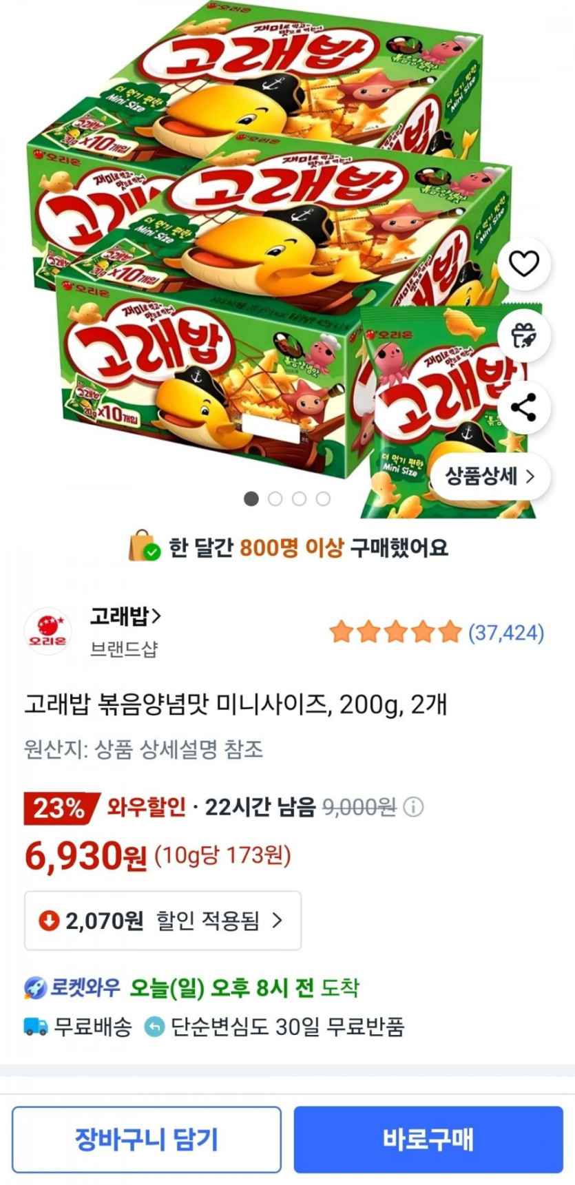 [쿠팡와우]고래밥 볶음양념맛 미니사이즈 200g 2개 (6,930원/무배) 작성자 정보 사랑이 작성 작성일 2025.06.22 08:32 컨텐츠 정보 15 조회 목록 본문 구매링크는 제휴 링크로 전환될 수 있으며, 이를 통해 제휴사로부터 일정비율의 커미션을 지급받습니다. 와우타임세일미니사이즈라 간식용으로 좋아요총 20개 https://link.coupang.com/a/cAx6e8 관련자료 이전 [롯데온]구로시장 다미랑떡볶이 4팩(신라면맵기) (11,900원/무료) 작성일 2025.06.22 08:49 다음 [11번가]리엔 흑모비책골드 염색약 90g 4개 (10,900원 / 무료배송) 작성일 2025.06.22 07:10 댓글 0 등록된 댓글이 없습니다. 로그인한 회원만 댓글 등록이 가능합니다. 목록