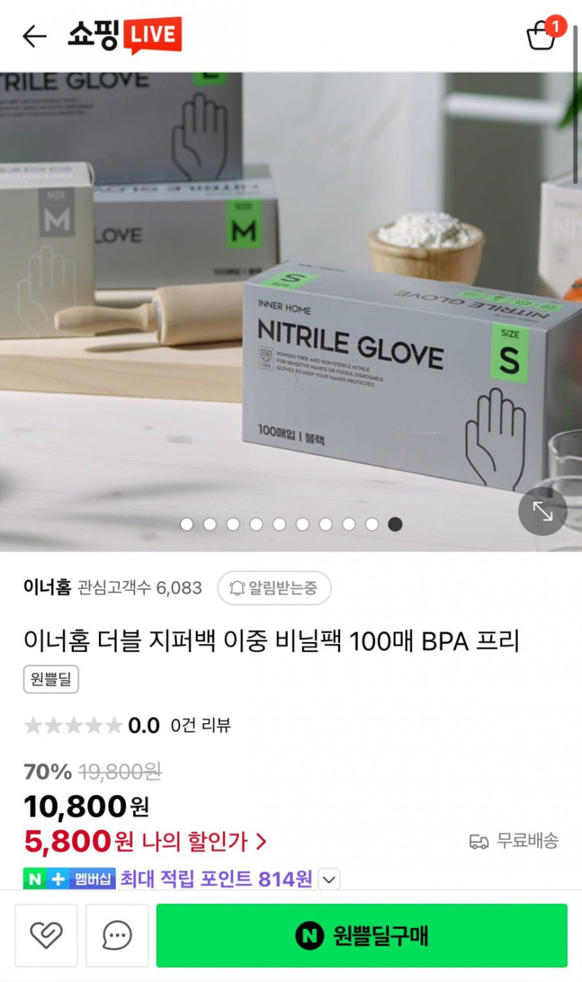 [네이버]이너홈 식품용 니트릴 장갑 200매(5,900원/무료배송)