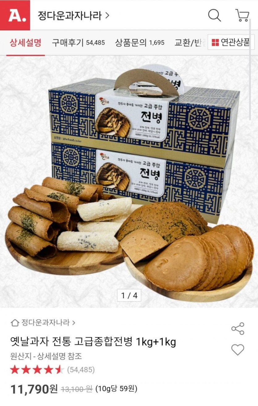 [옥션]전통 고급종합전병 1kg+1kg (11,790원/무료)