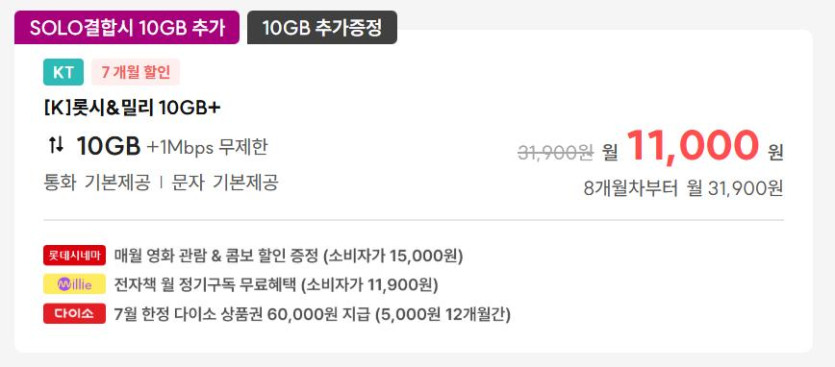 [아이즈모바일]알뜰폰 KT망 10GB + 1Mbps / 통화문자 무제한 / 부가통화 300분 (영화관람권/밀리의서재/다이소5천원 제공 시 체감 -2.1만원) (7개월...