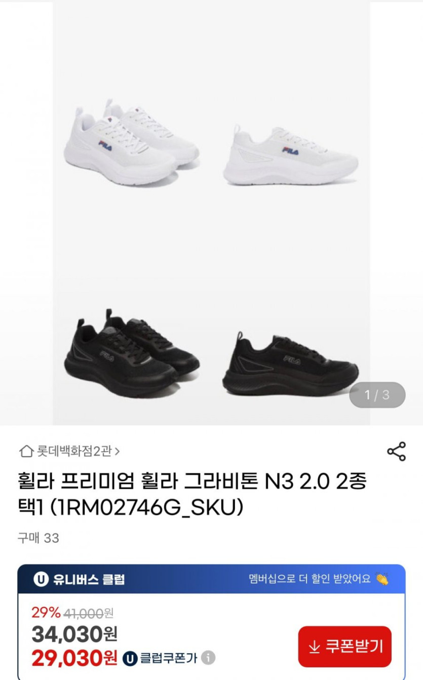 [지마켓]휠라 그라비톤 N3 2.0운동화 (29,030원/무료)