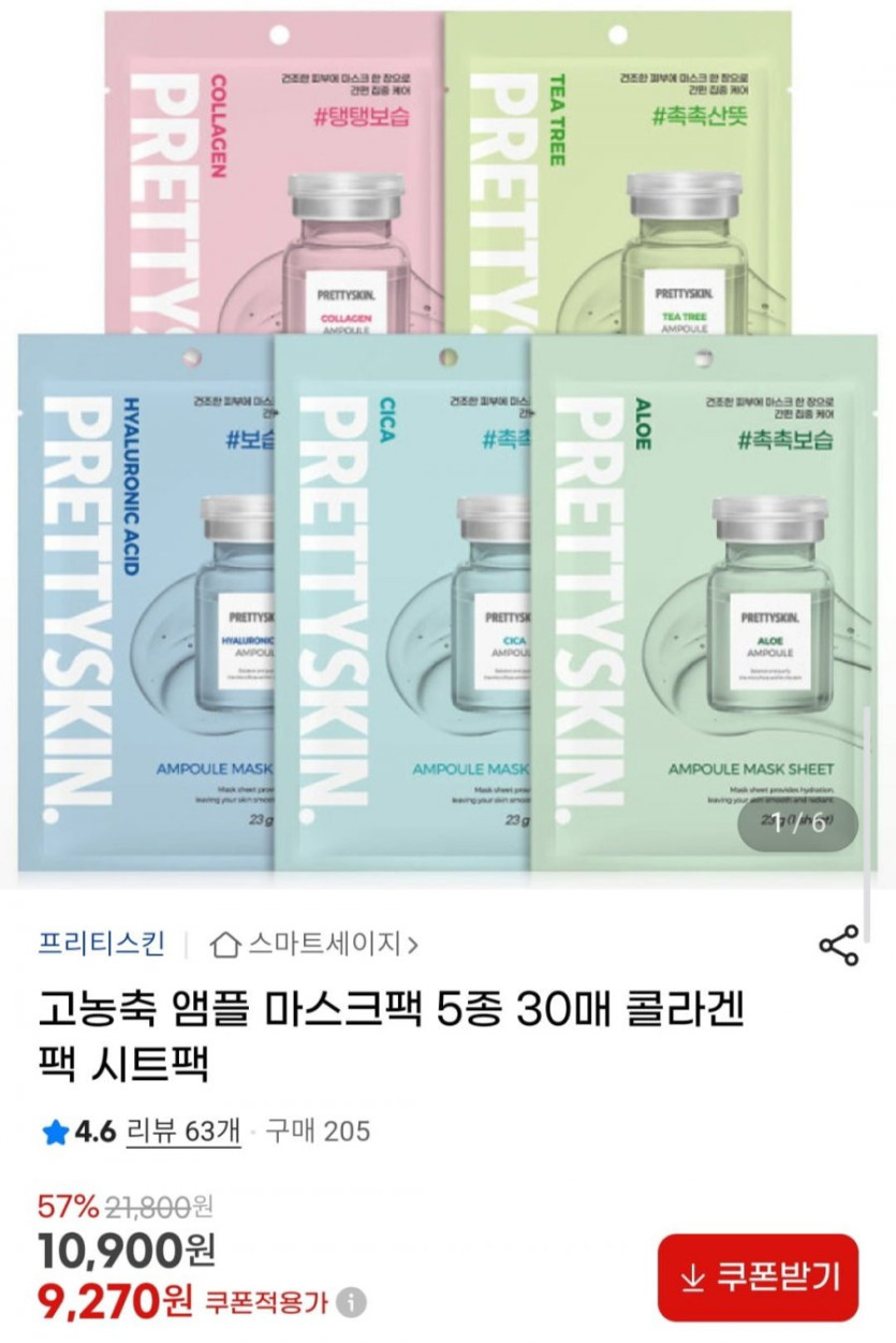 [G마켓]고농축 앰플 마스크팩 5종 30매 (9,270원/무배)
