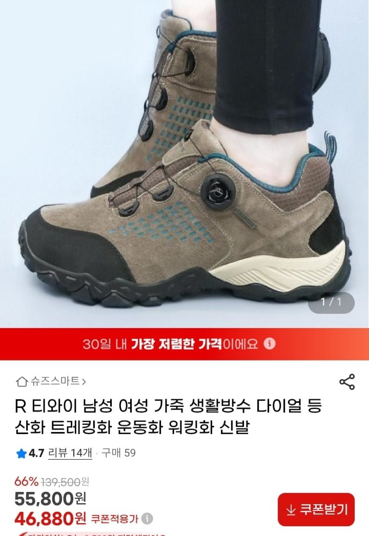 가죽 생활방수 등산화인데 가격 저렴한편 같습니다.