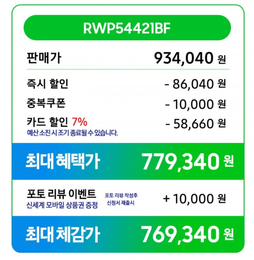 쿠폰 + 카드결제시 779,340원
