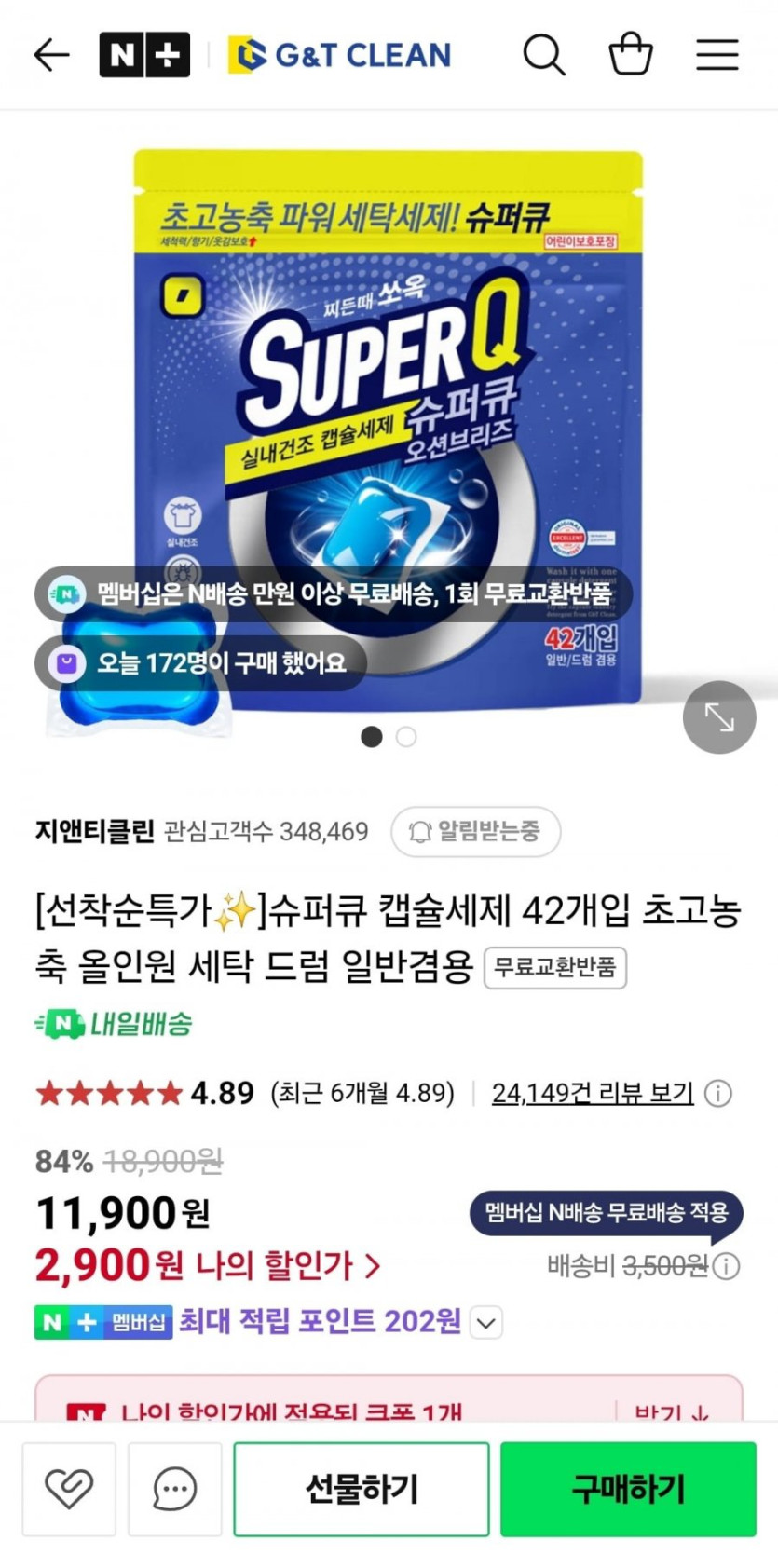 [네이버]슈퍼큐 캡슐세제 42개입 초고농축 올인원 세탁 드럼 일반겸용(2,900원/무료배송) 작성자 정보 루루 작성 작성일 2025.07.07 08:39 컨텐츠 정보 17 조회 목록 본문 https://naver.me/xKtCAaYA 오랜만에 캡슐세재 2000원대 왔네요 선착순입니다 https://naver.me/xKtCAaYAhttps://naver.me/xKtCAaYA 관련자료 링크 https://naver.me/xKtCAaYA 1 회 연결 http://뽐뿌 3 회 연결 이전 [쿠팡]물걸레 겸용 로봇청소기 (129,900원/무료) 작성일 2025.07.07 08:42 다음 [쿠팡]스탠리 아이스플로우 플립 스트로 2.0 텀블러, 라일락, 887ml, 1개(와우할인 38,200원/무료) 작성일 2025.07.07 08:18 댓글 0 등록된 댓글이 없습니다. 로그인한 회원만 댓글 등록이 가능합니다. 목록
