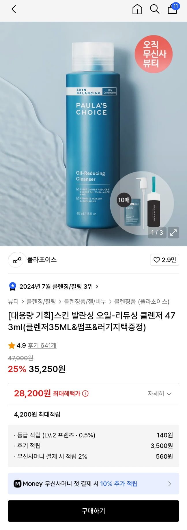 [무신사]폴라초이스 발란싱오일-리듀싱 클렌저 473ml 대용량기획+증정 (28,200원/무료)