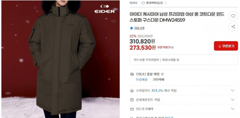[G마켓]아이더 남성용 대장급 캐시미어 윈드스토퍼 롱 구스다운 (273,530원/무료)