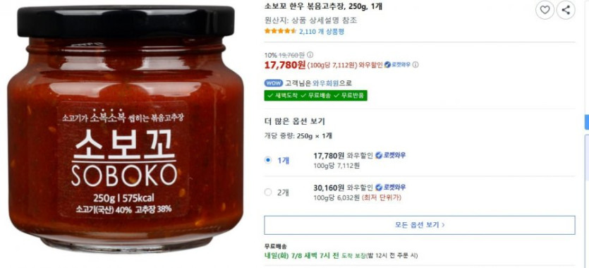 [쿠팡] 소보꼬 한우 볶음고추장, 250g, 1개 (17,780/무료)