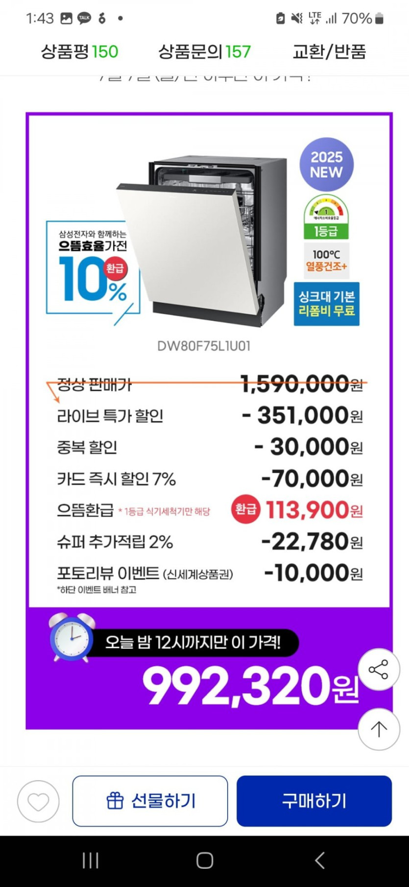 리뷰이벤트까지 전부 받으면 992,320원까지 나오고