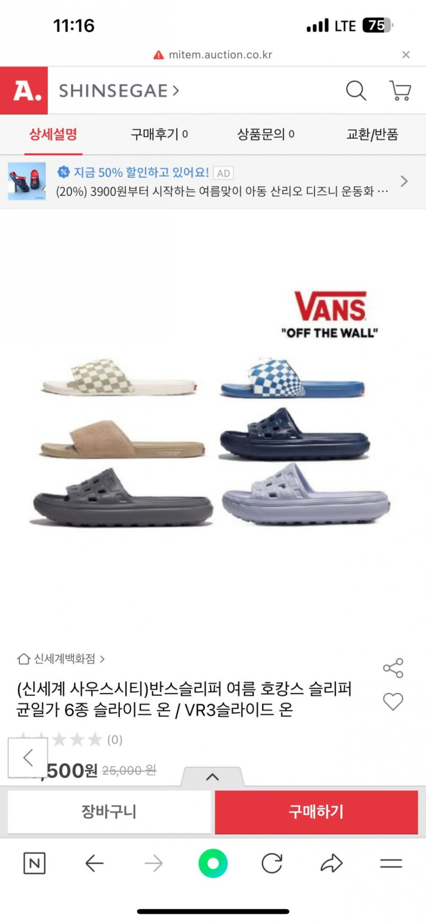 [옥션]반스 여름 슬리퍼 균일가 6종 / (17,420원 / 유료)