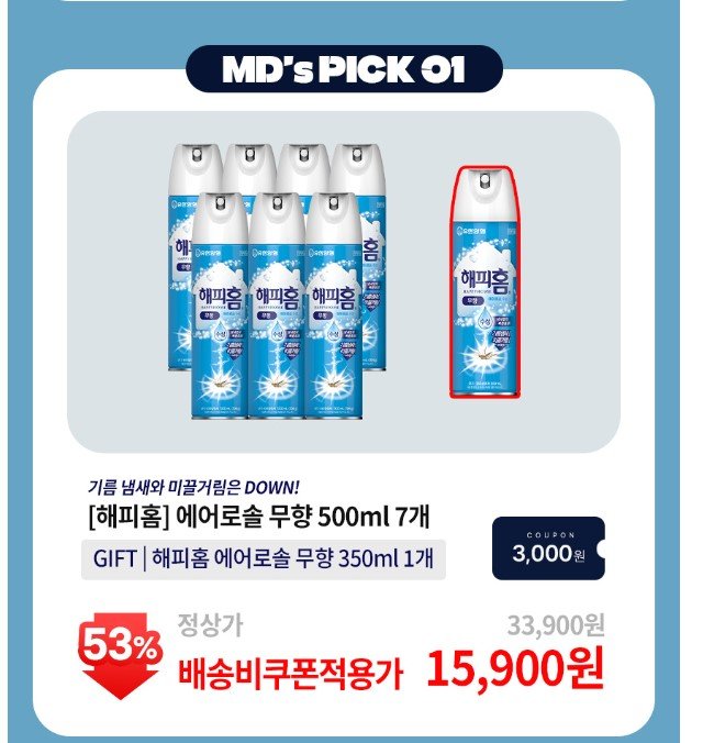 [NS홈쇼핑]해피홈 에어로솔 수성 무향 500ml 7개+에어로솔 무향 350ml 증정(15,900원/배송비지원)