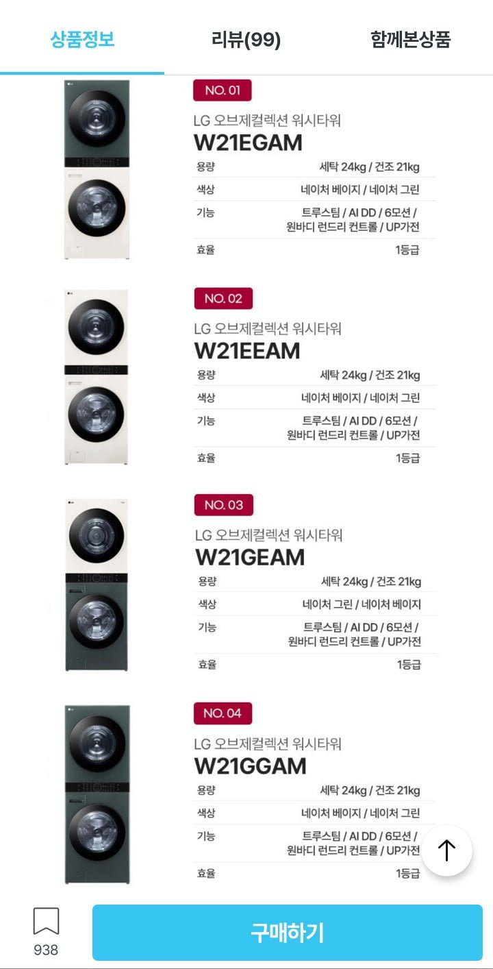 옵션에서 W21EGAM/W21GEAM/W21EEAM/W21GGAM 색상선택 하시면 됩니다