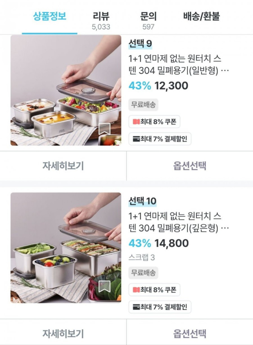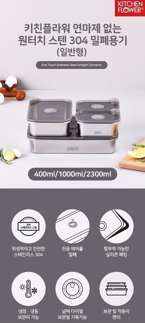 [오늘의집]1+1 연마제 없는 원터치 스텐 304 밀폐용기 (10,524원~/무료)