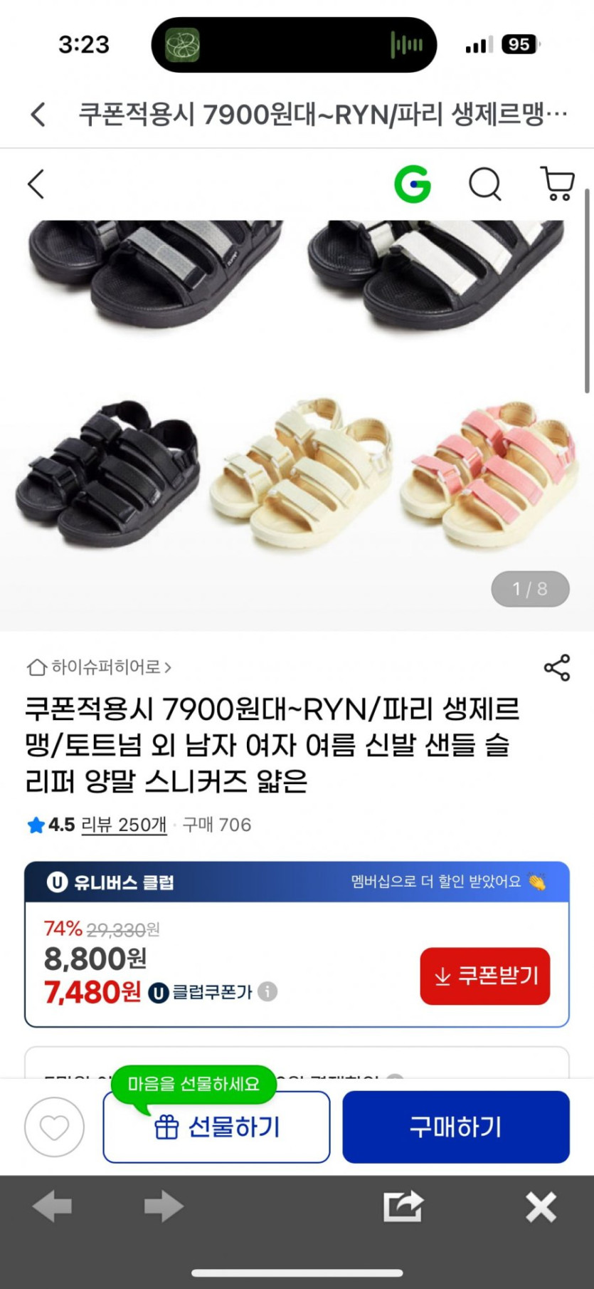 [지마켓]쿠폰적용시 7900원대 신발 샌들 슬리퍼 양말 스니커즈(8,800원/무료) 작성자 정보 사랑이 작성 작성일 2025.07.07 15:26 컨텐츠 정보 21 조회 목록 본문 그냥 쿠폰써도 7920원 가격 ㄱㅊ은듯https://item.gmarket.co.kr/Item?goodscode=3057746675https://item.gmarket.co.kr/Item?goodscode=3057746675 관련자료 링크 https://item.gmarket.co.kr/Item?goodscode=3057746675 8 회 연결 http://뽐뿌 7 회 연결 이전 [지마켓]쿠폰적용시 7900원대 신발 샌들 슬리퍼 양말 스니커즈(8,800원/무료) 작성일 2025.07.07 15:26 다음 [쿠팡]POPCHOSE 접이식 좌식 캠핑 의자 (15,590원/무료) 작성일 2025.07.07 15:26 댓글 0 등록된 댓글이 없습니다. 로그인한 회원만 댓글 등록이 가능합니다. 목록