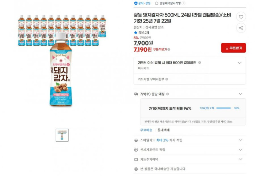 [G마켓]광동 돼지감자차 500ml 24병 (7,190원 / 무료)