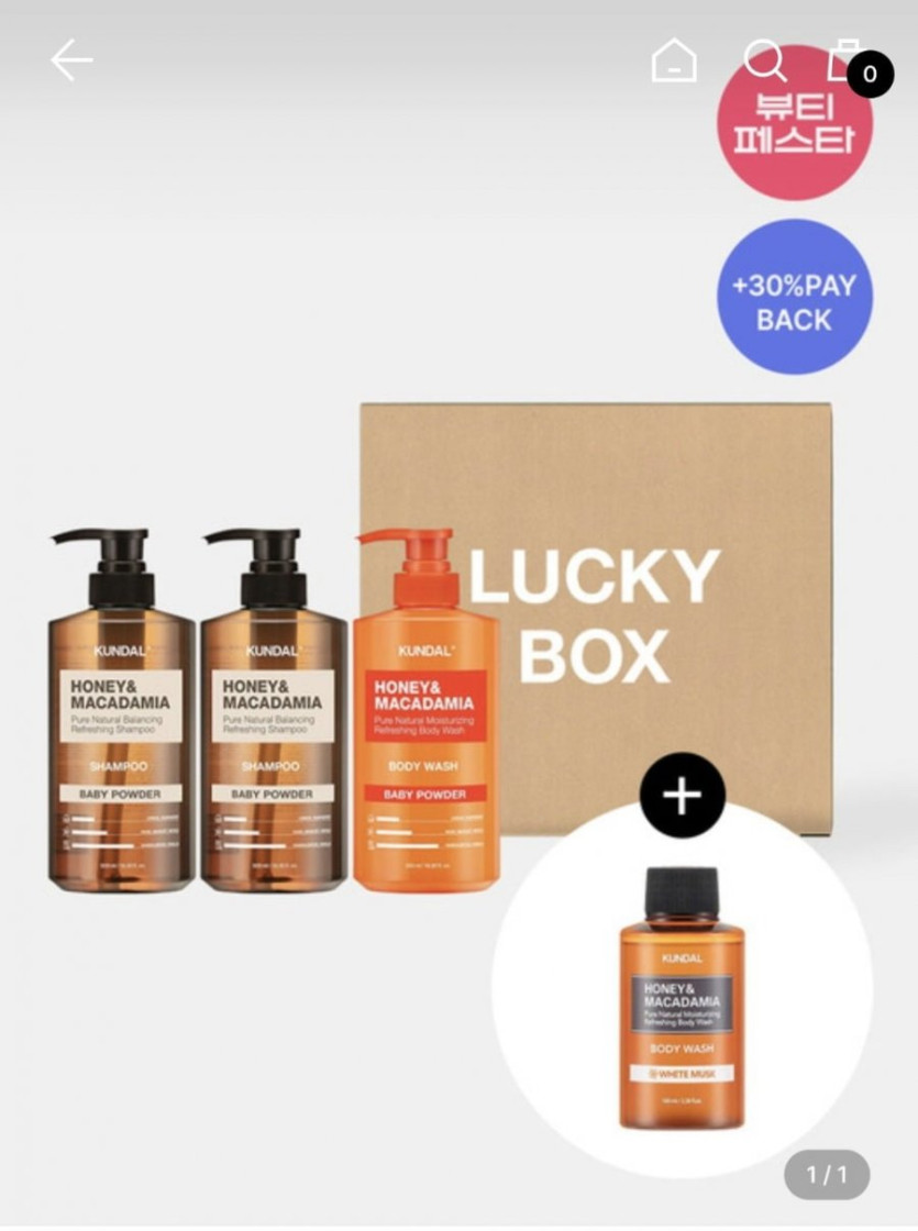 쿤달 샴푸 500ml 2개 +바디워시 500ml 1개 구성에 바디워시 100ml 증정 있습니다