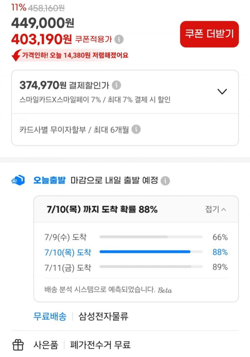 번거롭더라도 환급신청 리뷰참여 둘다 하시면 결제가보다 실제 더 괜찮은 조건으로 구매돼서 인치수 대비 메리트있어보입니다