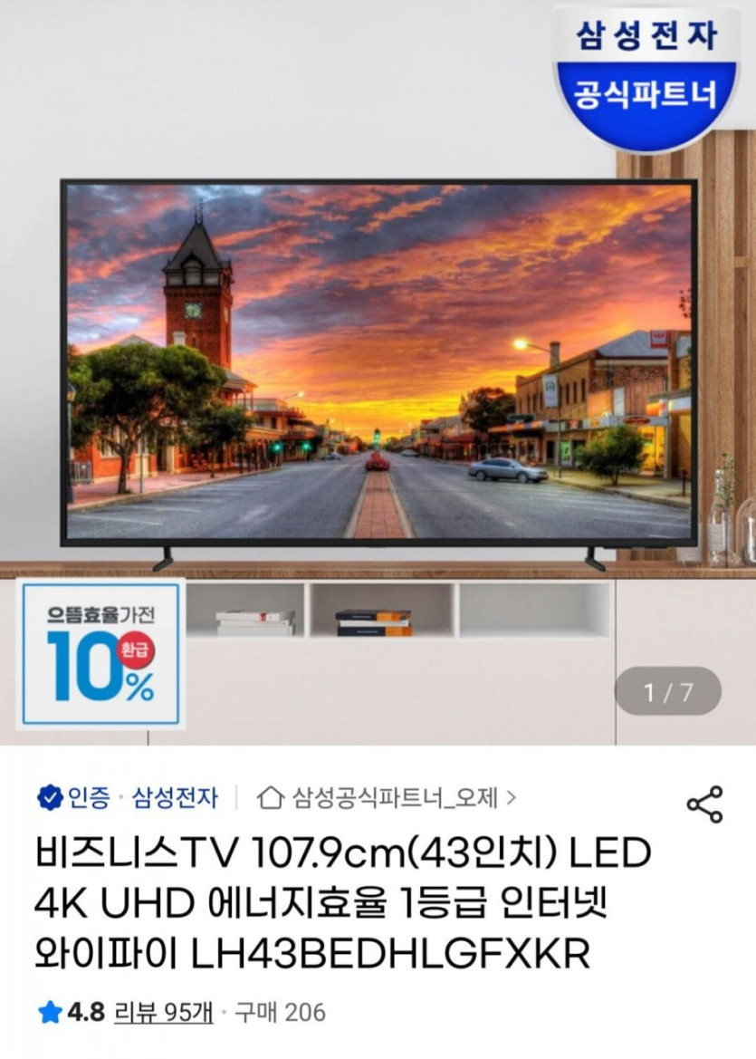 [지마켓]삼성 비즈니스 TV LED 4K UHD 43인치 (403,190원/무료)