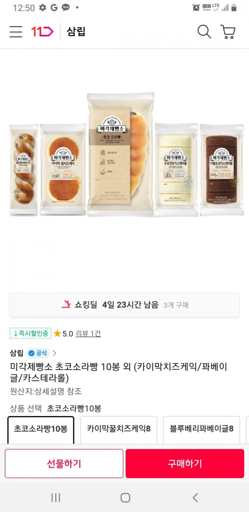 [11번가]미각제빵소 초코소라빵 10봉 외 (카이막치즈케익/꽈베이글/카스테라롤) (11,900원 / 무료)