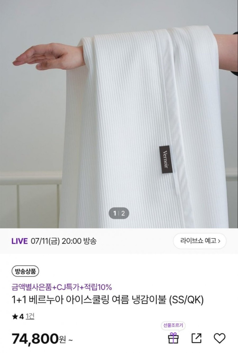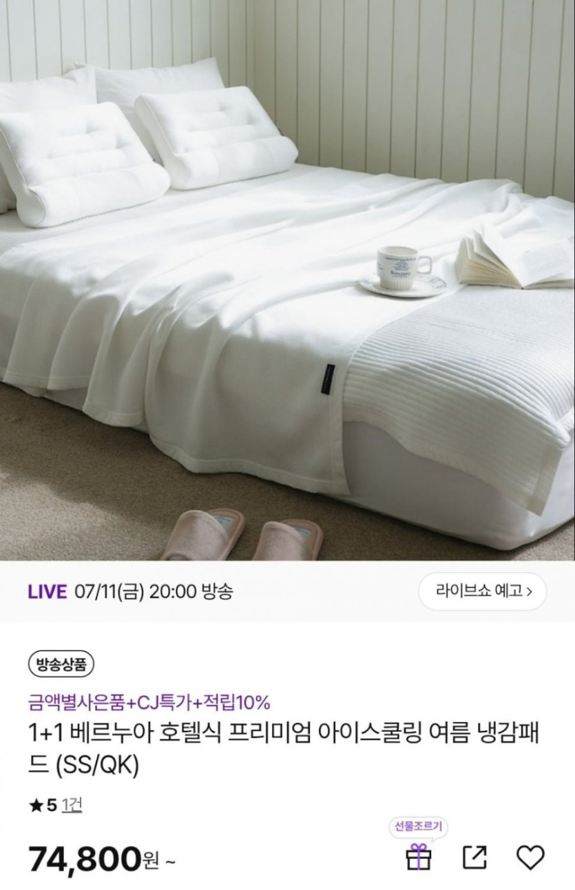 [CJ온]1+1 호무로 베르누아 호텔식 프리미엄 아이스쿨링 여름 냉감패드/이불 (74,800원/무료)