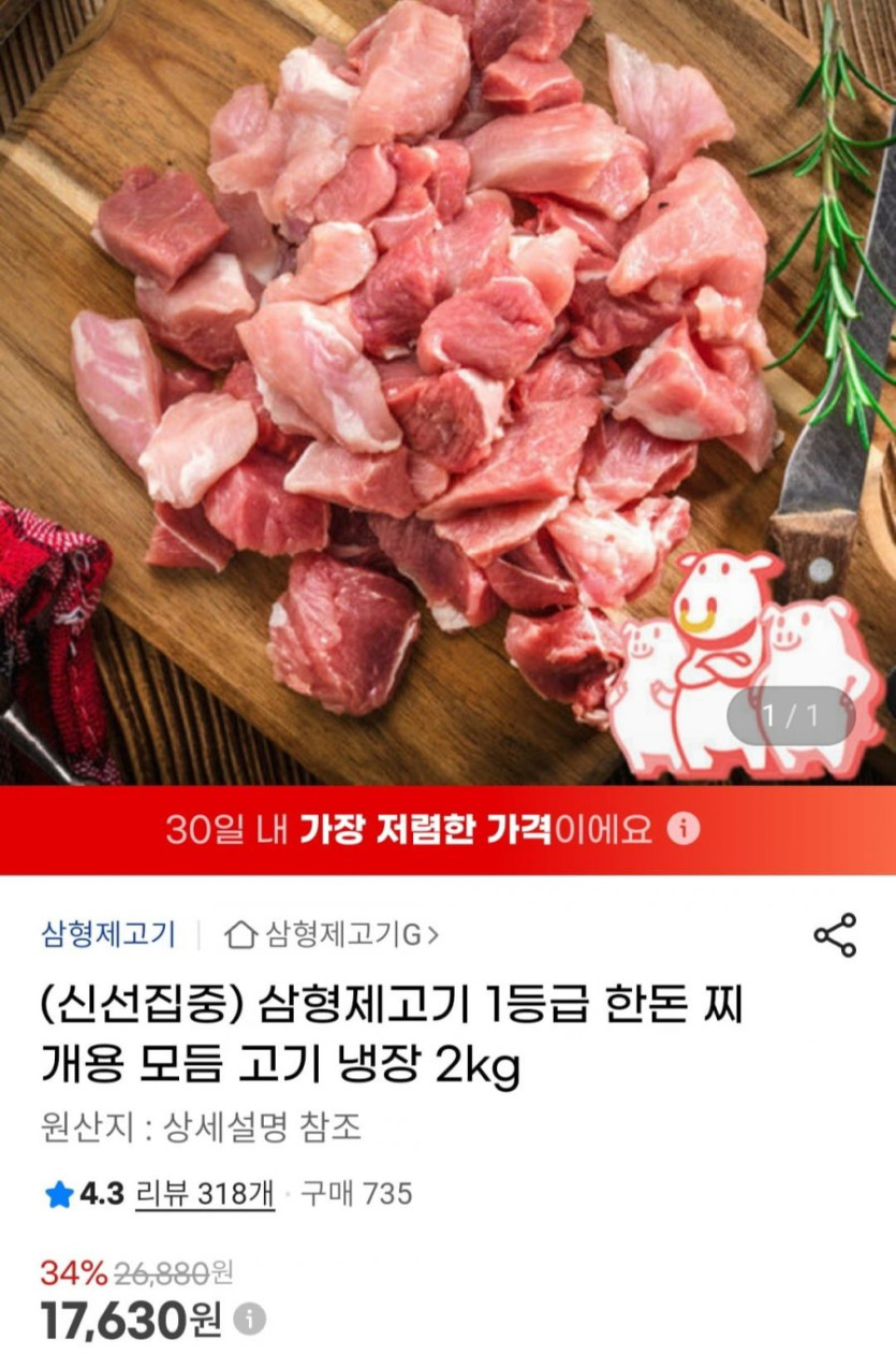 [지마켓]한돈 찌개용 돼지고기 2kg(17,630원/무배)