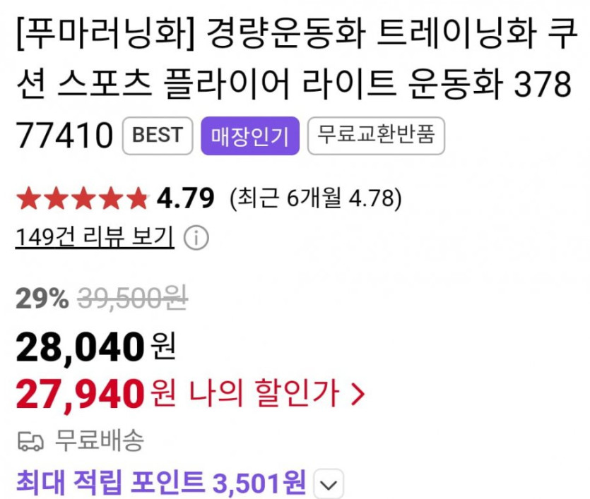 깔창이 소프트폼이고 발볼 있으시면 5mm~10mm 크게 신으시기 바랍니다. 그리고 무료교환반품도 1회 가능하네요 러닝화 용도 보다는 일상화로 적합해 보이구요