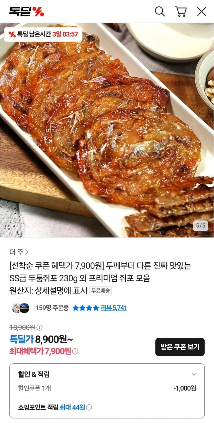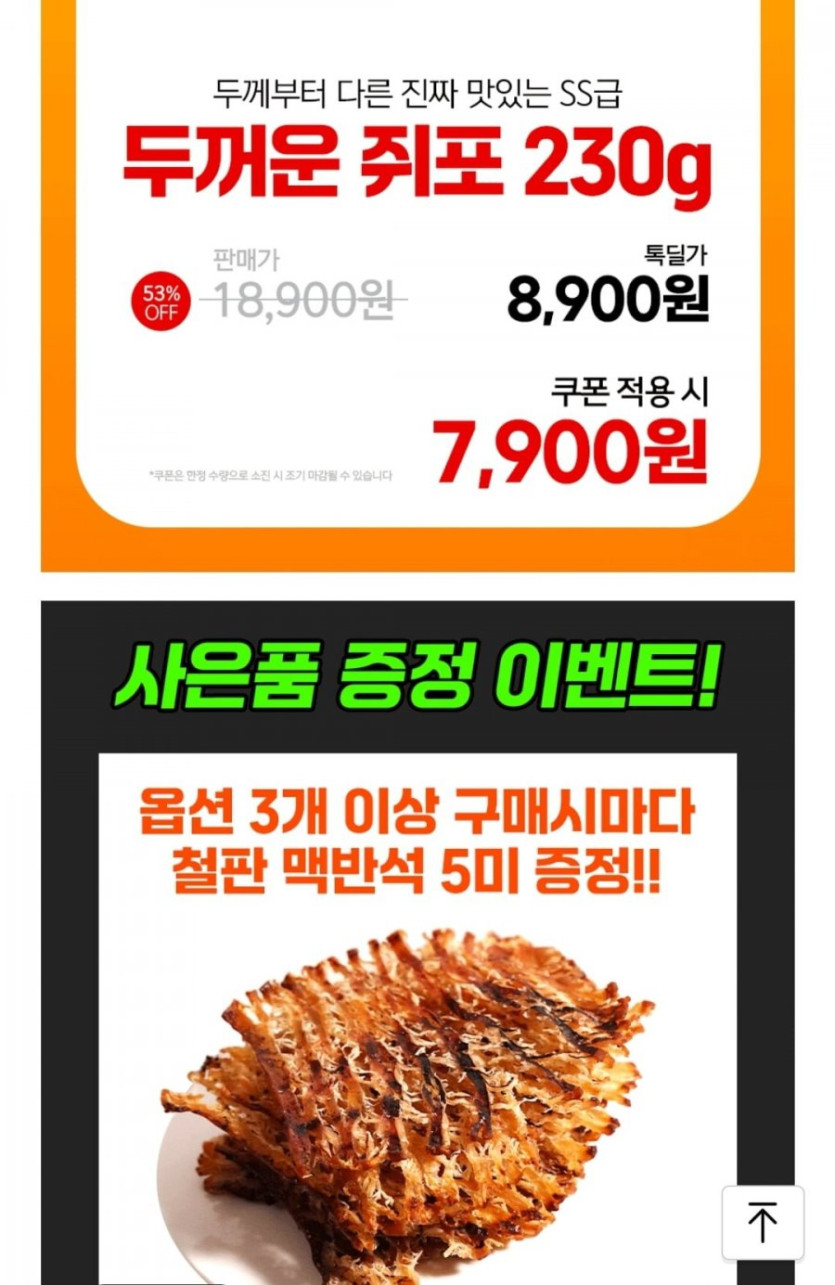 [톡딜]SS급 두툼 쥐포 230g (7900원/무료)
