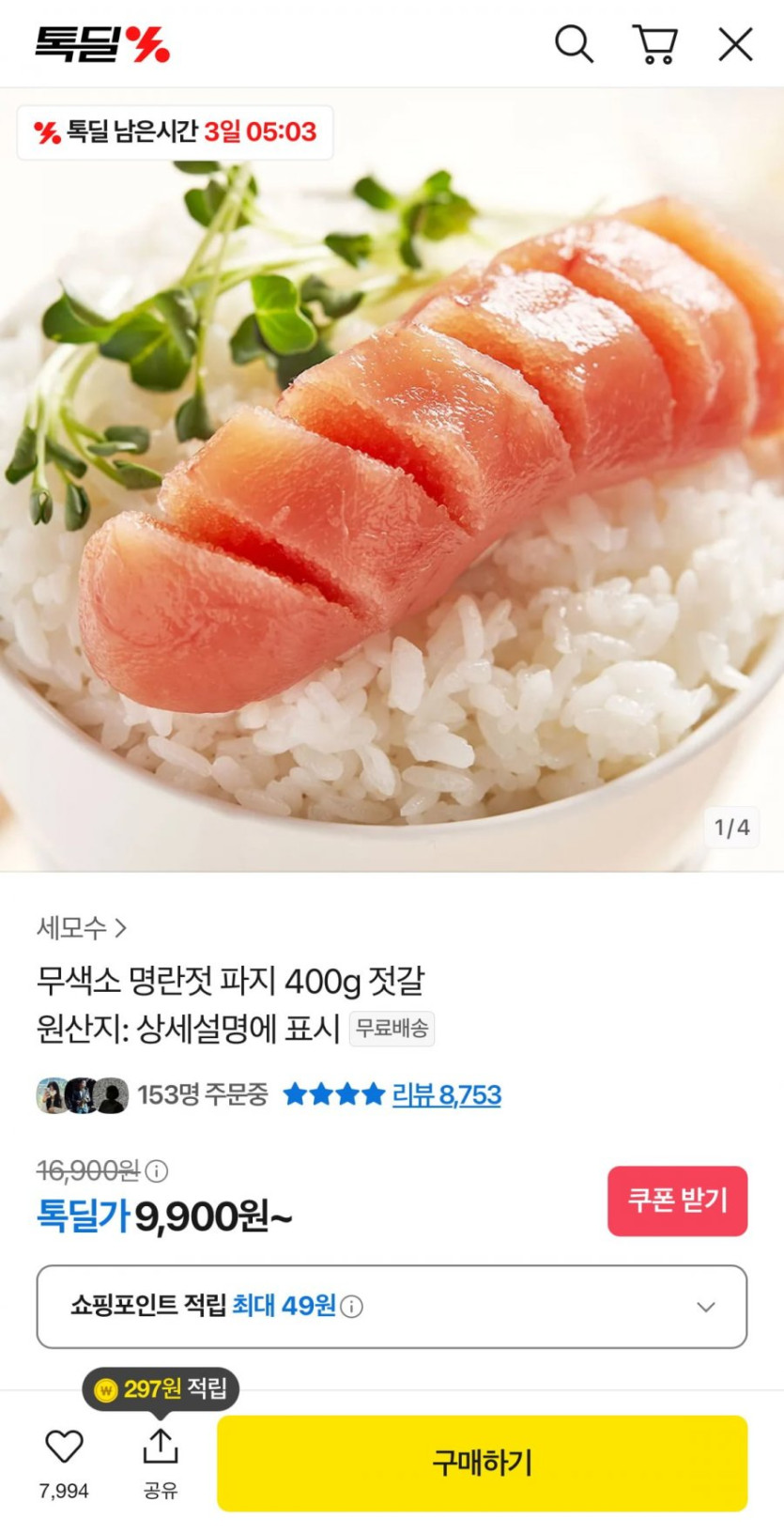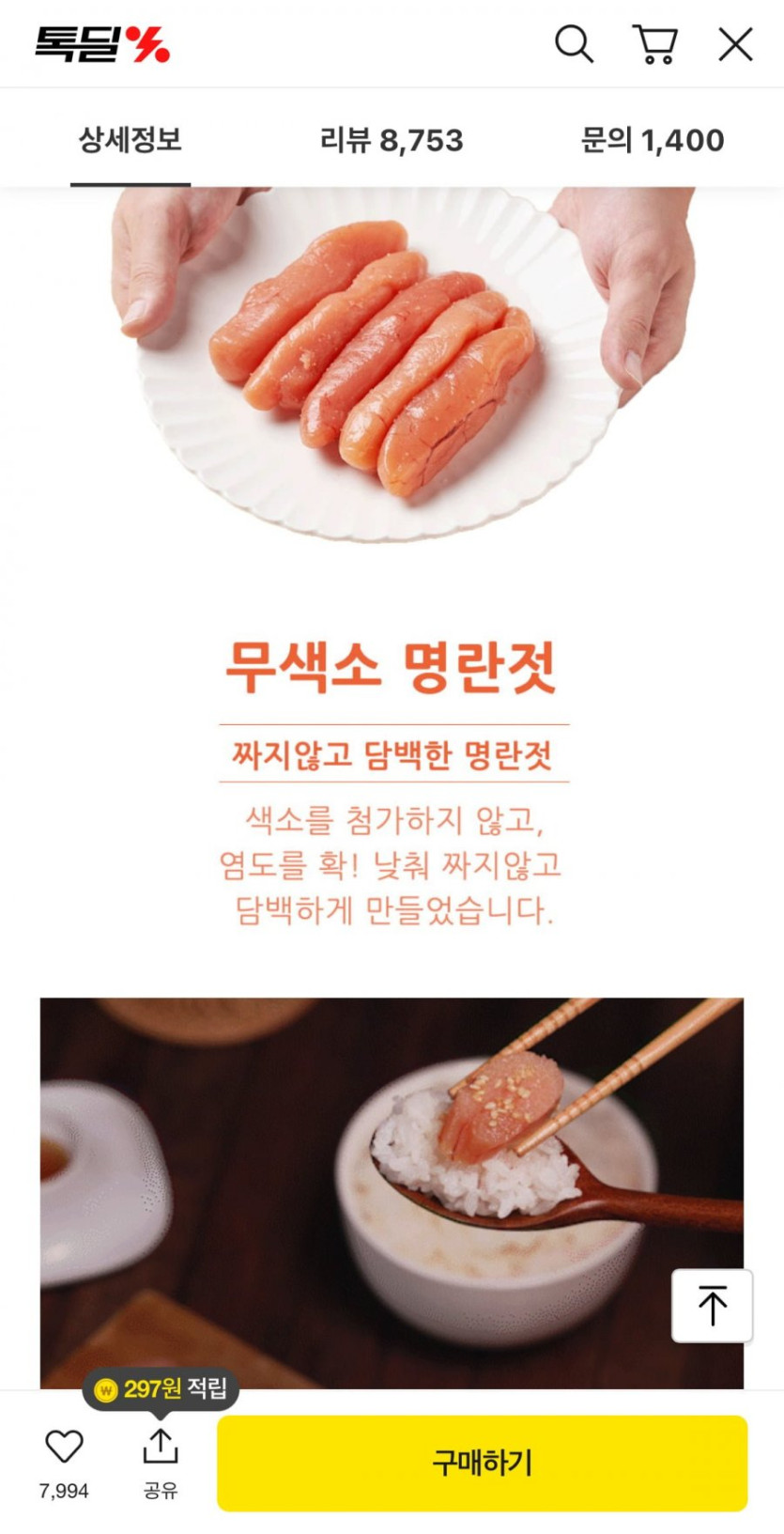 [톡딜]명란젓 파지 400g (9,900원/무배)