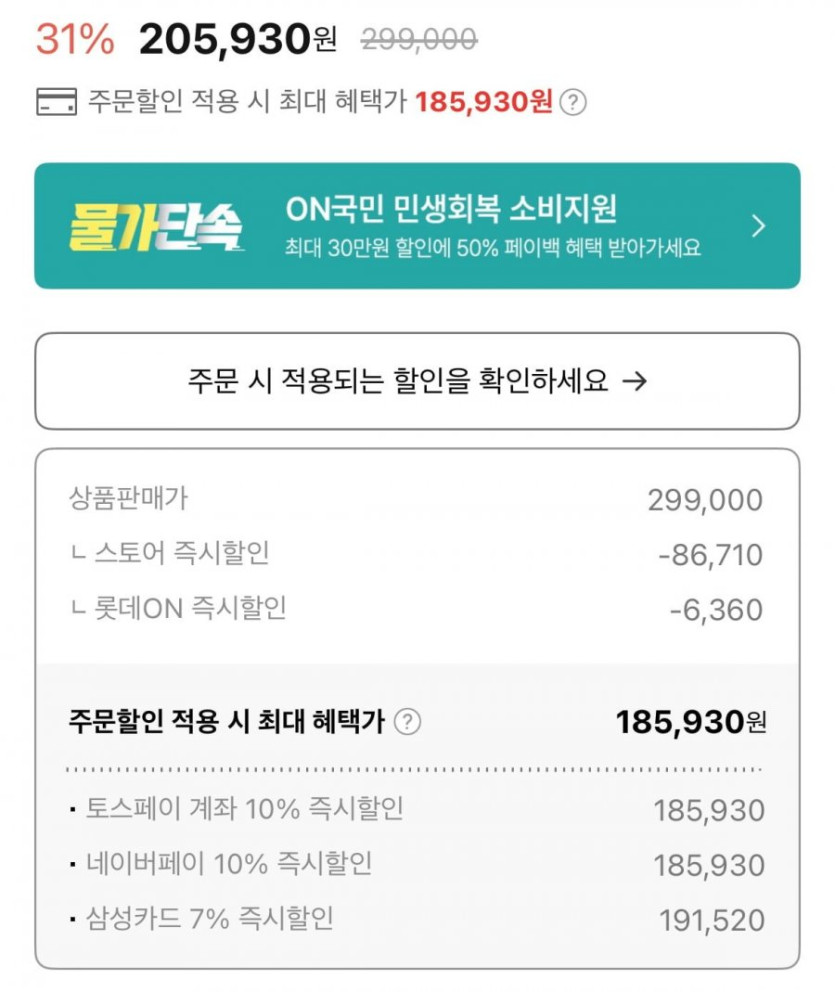 네이버/토스 결제가 기준185,930원까지 떨어집니다