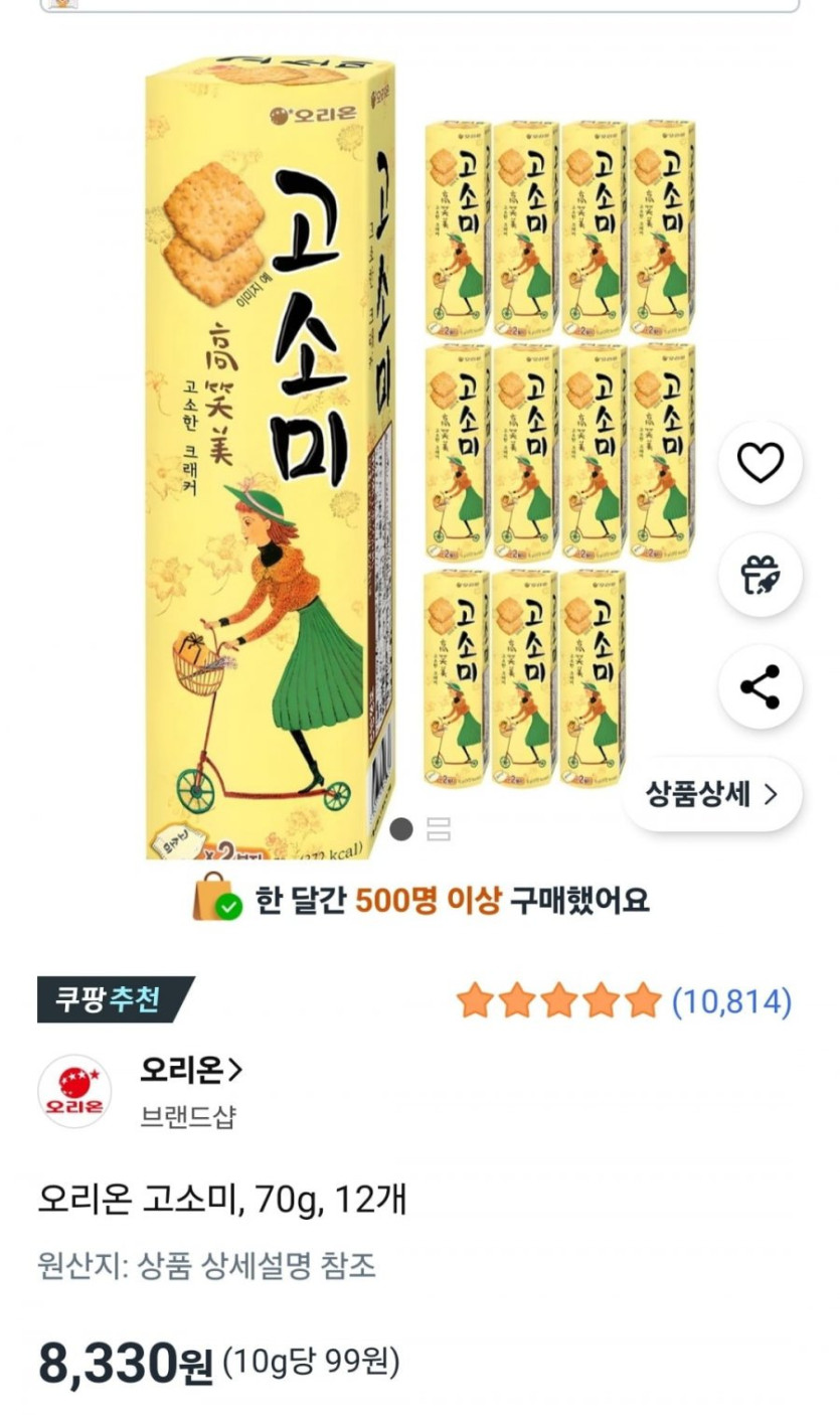 [쿠팡]오리온 고소미 70g 12개 (8,330원/무배) 작성자 정보 구름 작성 작성일 2025.07.14 20:50 컨텐츠 정보 37 조회 목록 본문 구매링크는 제휴 링크로 전환될 수 있으며, 이를 통해 제휴사로부터 일정비율의 커미션을 지급받습니다. 고소미 좋아하시는 분~~~ 1개에 2봉지 들었어요! https://www.coupang.com/vp/products/314854999?itemId=12313414128&vendorItemId=85190815429&pickType=COU_PICK&q=314854999 - 12313414128&searchId=82fca578112952&sourceType=search&itemsCount=2&s 관련자료 이전 [공홈]지오다노 코튼 린넨 셔츠 (26,370원/무료) 작성일 2025.07.14 20:54 다음 [지마켓]스프라이트 킨사이다 185ml 90캔 (유클가 26,400원/무료) 작성일 2025.07.14 20:47 댓글 0 등록된 댓글이 없습니다. 로그인한 회원만 댓글 등록이 가능합니다. 목록