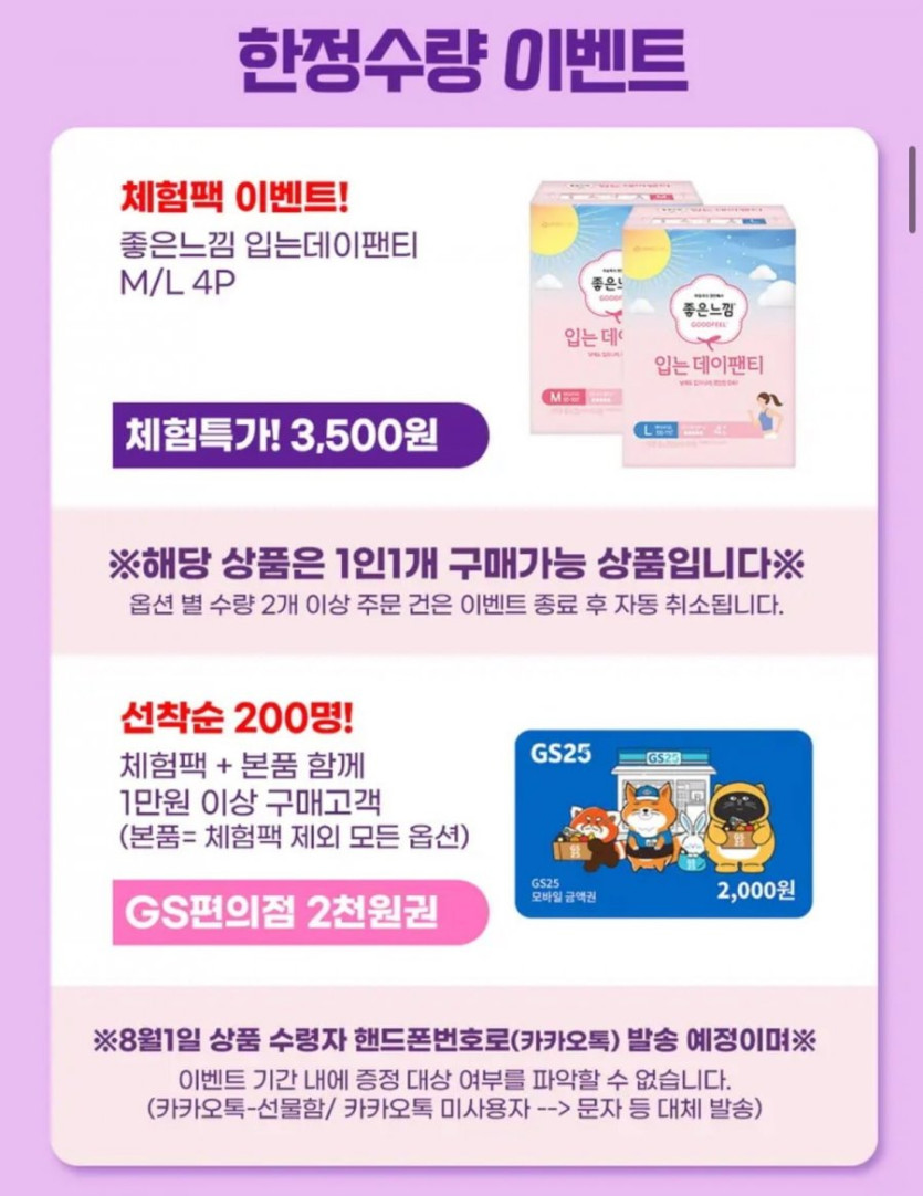 체험팩도 입는데이팬티 3500원이라 같이 담았는데 재고 있음 같이 담는거 추천요