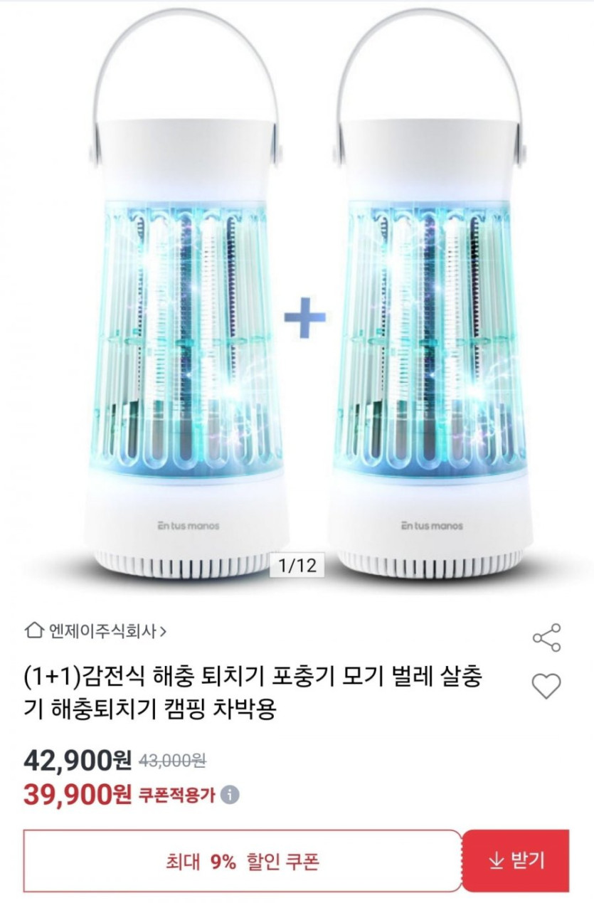 1+1이니 2개에 39900원 포충기 개당 1.9만원정도 되는데