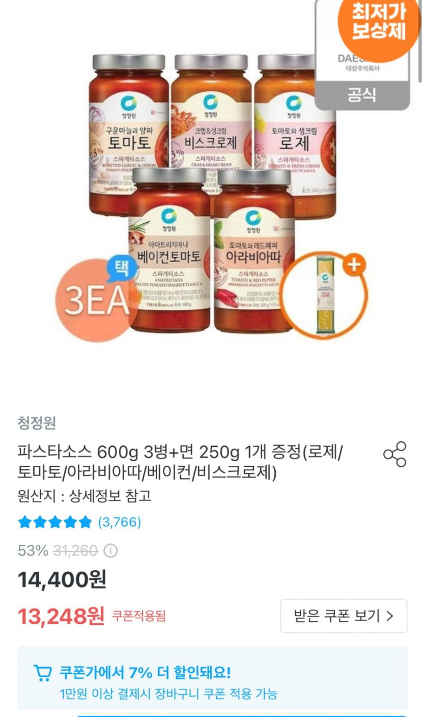 [오늘의집]청정원 파스타소스 600g 3병+면 250g 1개 증정 (토스 11,089원/무료배송) 작성자 정보 뽀미 작성 작성일 2025.07.17 00:52 컨텐츠 정보 57 조회 목록 본문 https://ozip.me/Fpwlum7 위의 최저가 선착순 7프로 장바구니 쿠폰 받고 토스페이로 결제시 최종가 11,089원입니다. https://ozip.me/l0V6yby 관련자료 이전 [옥션]돌산갓김치 1.5kg 산지직송 당일생산 (9,970원/무배) 작성일 2025.07.17 00:57 다음 [옥션]7월 미구매 컴포즈 아이스아메리카노 (990원/무배) 작성일 2025.07.17 00:48 댓글 0 등록된 댓글이 없습니다. 로그인한 회원만 댓글 등록이 가능합니다. 목록