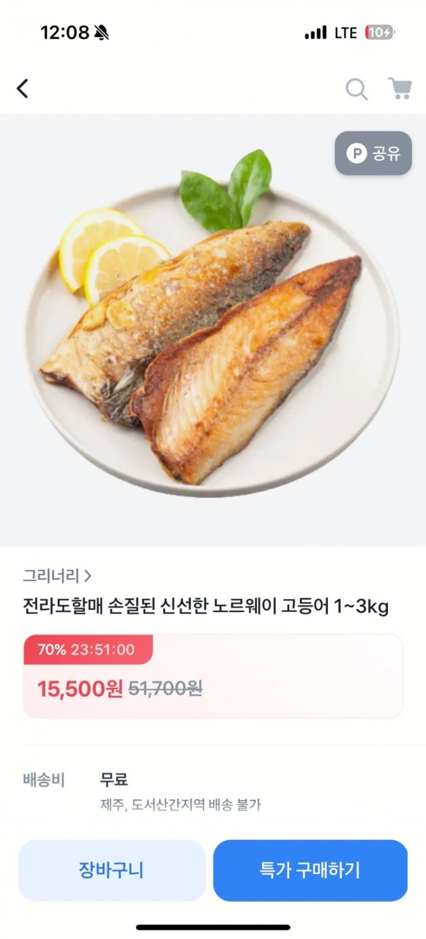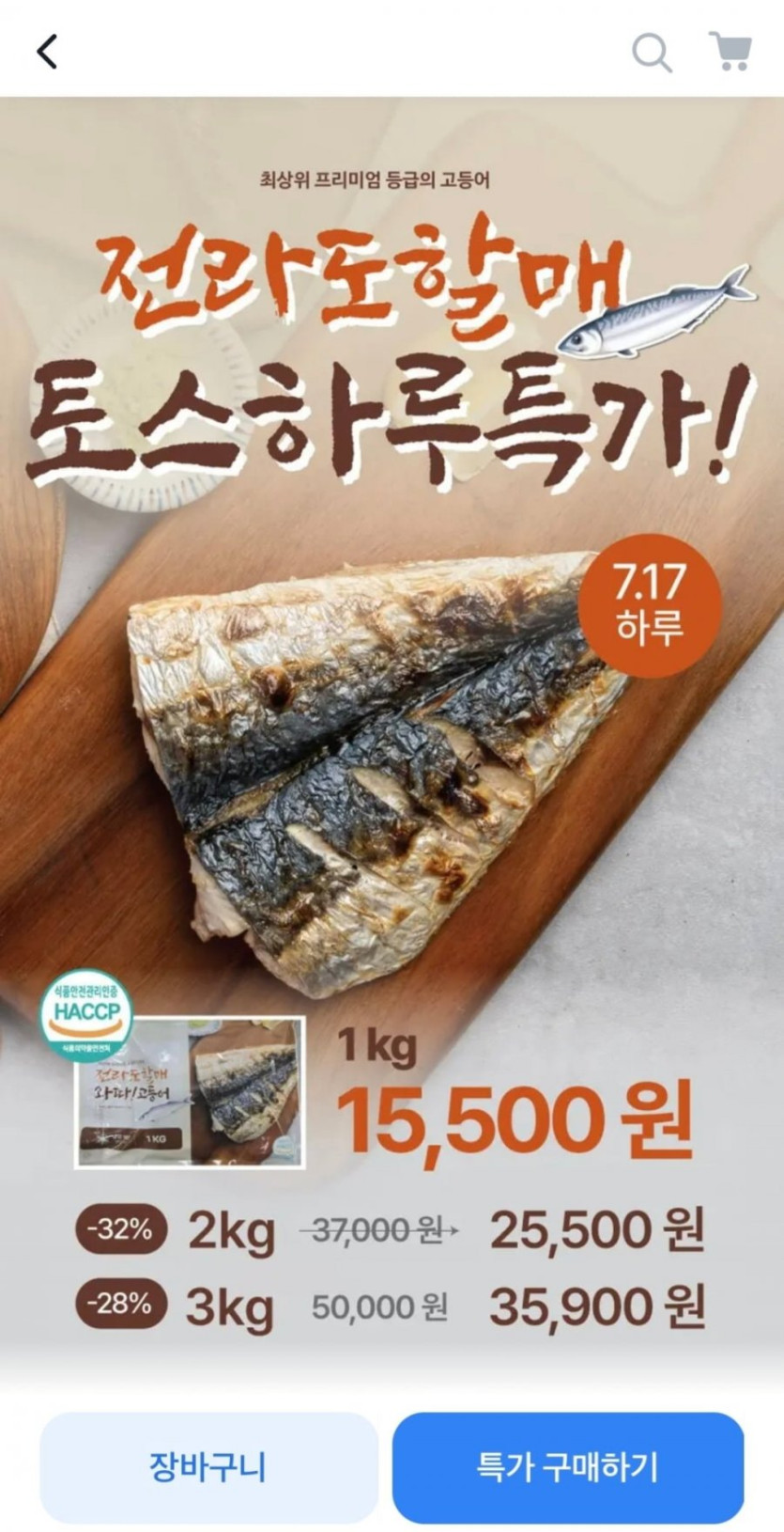 [토스]전라도할매 손질된 노르웨이 고등어 2kg (25,500원/무료배송)