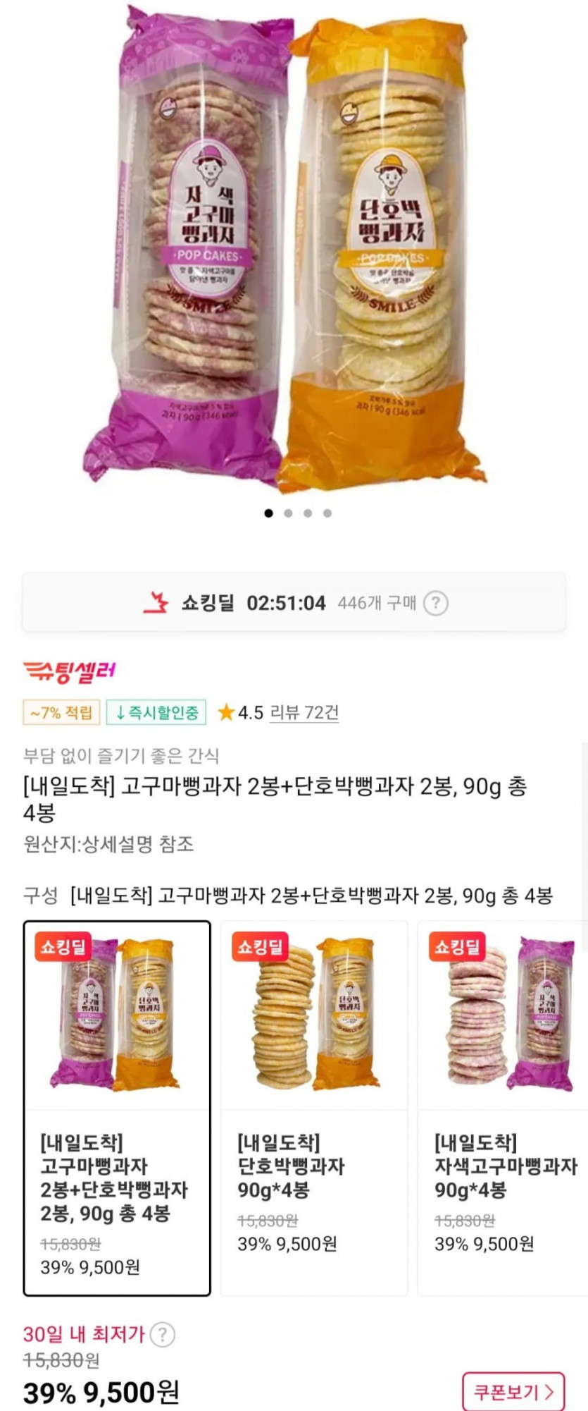 뻥과자 90g 4개 맛 2종류 9500원 가끔 먹고싶을때 사먹곤하는데 저렴하네요