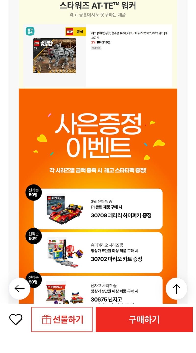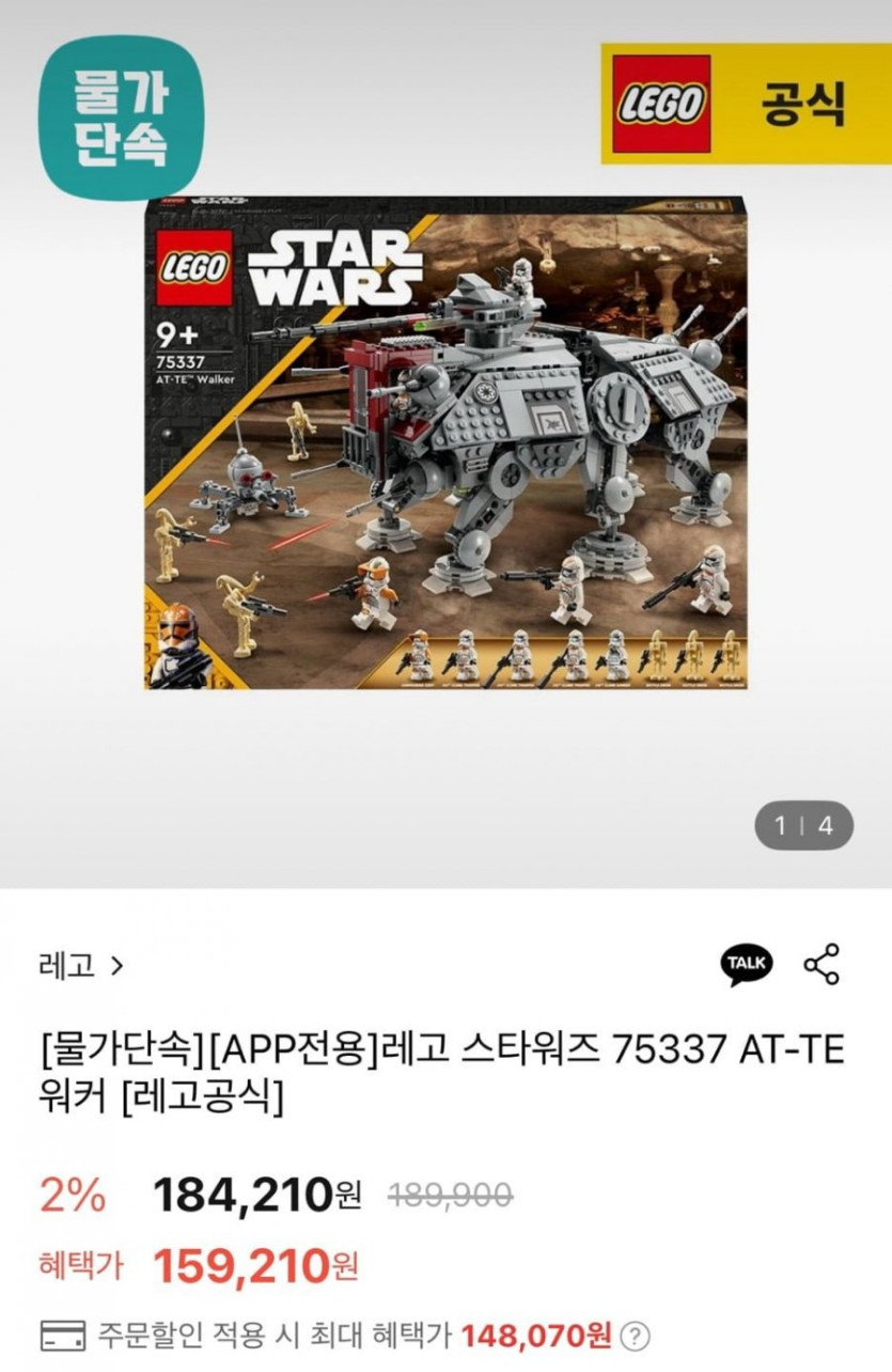[롯데온]레고 스타워즈 75337 AT-TE 워커 한정수량(148,070원/무료)