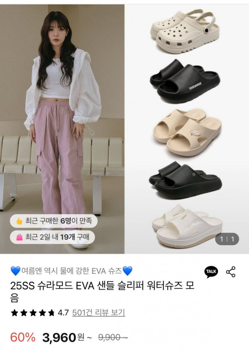 [롯데온]슈라모드 EVA샌들 슬리퍼 워터슈즈 모음 (3,960원 부터/무배)