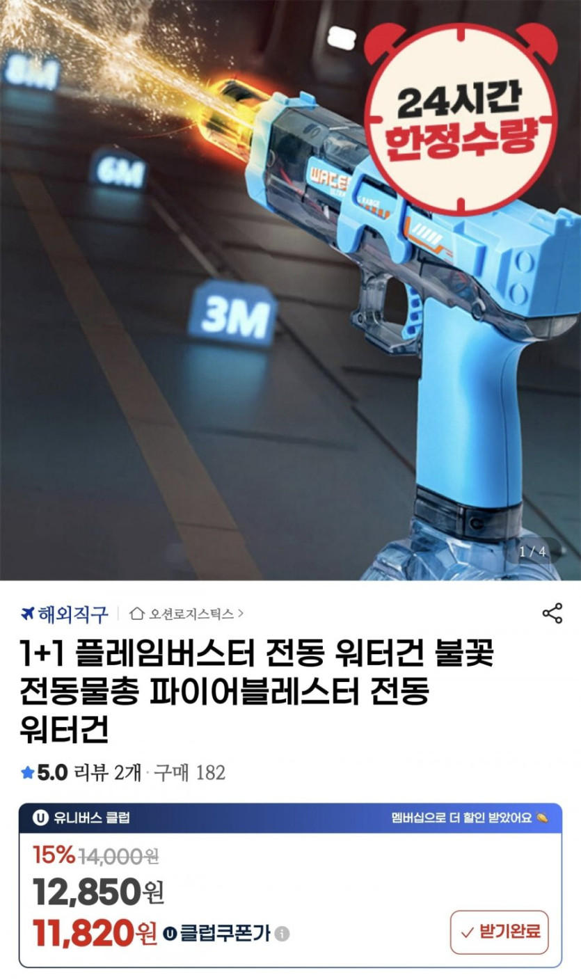 이전에 올라왔던 전동 물총이 더 싸졌네요