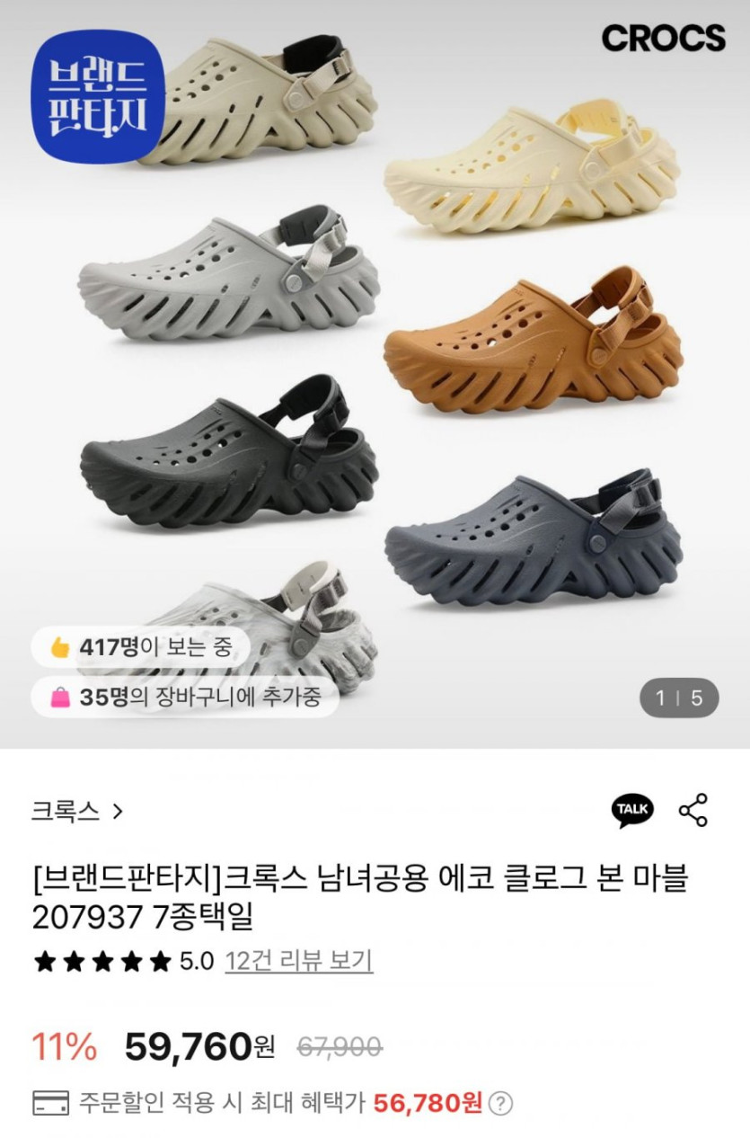 [롯데온]크록스 남녀공용 에코 클로그 본 마블 207937 7종택일 (56,780원/무배)