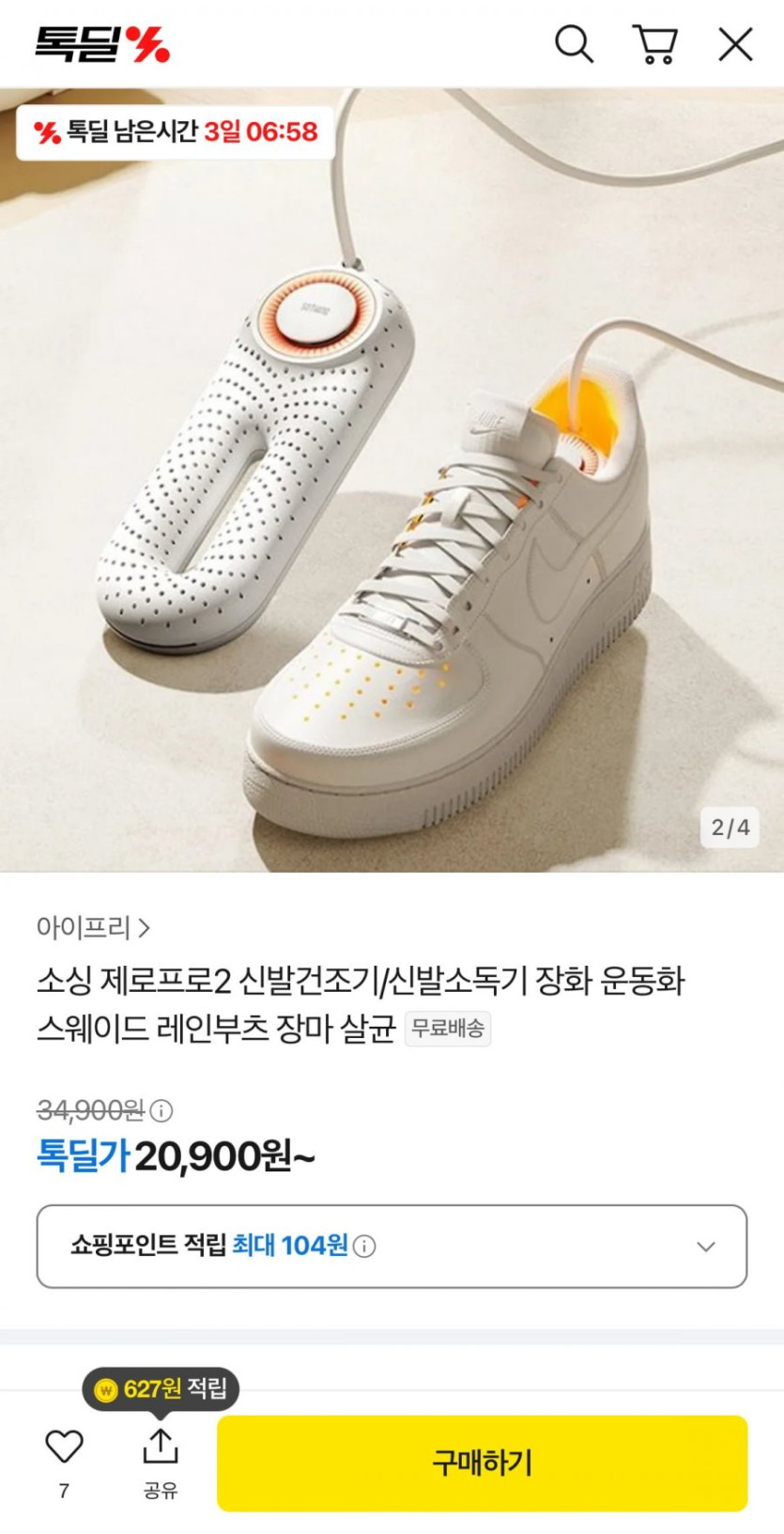 [톡딜]소싱 제로프로2 신발건조기 (20,900원/무배)