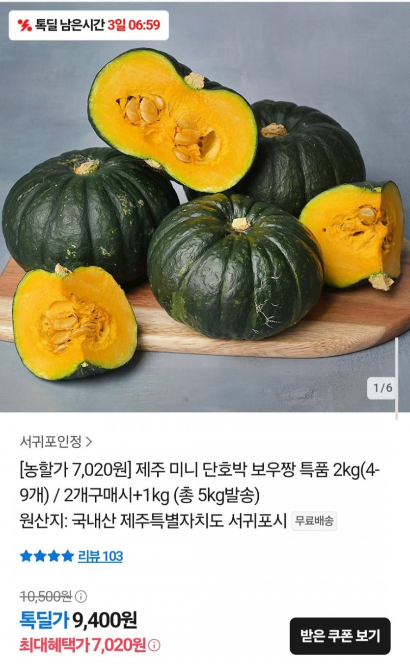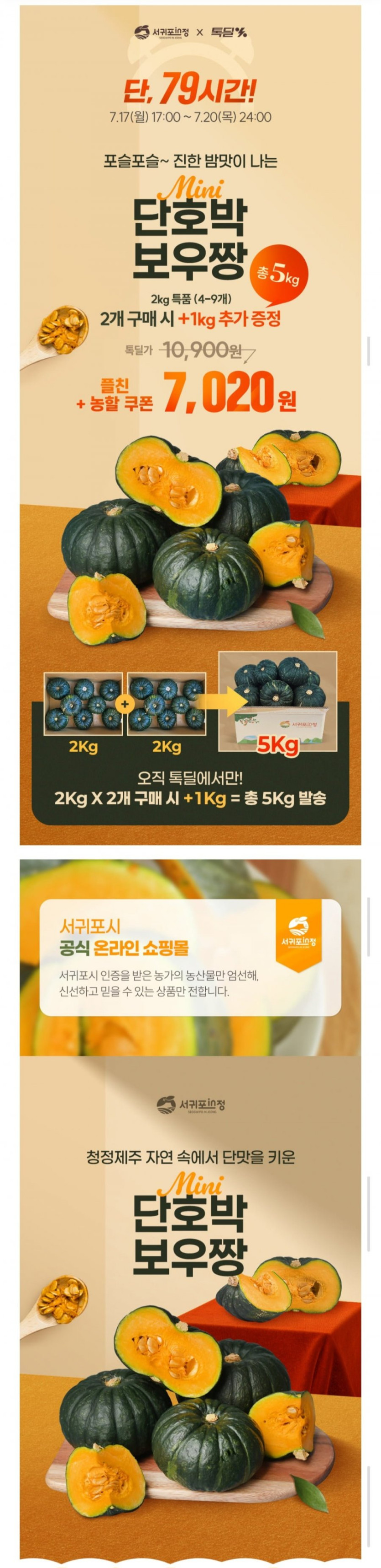 [톡딜]제주 미니 단호박 특품 2kg (7,020원/무료)
