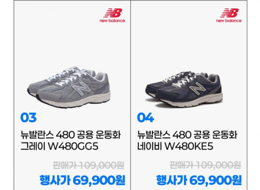 [카카오]뉴발란스 480 운동화 (69,900원/무료)