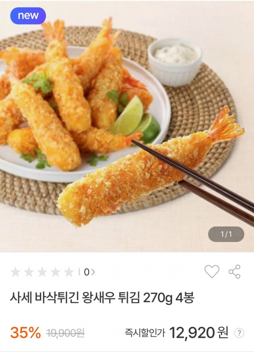 [동원몰]사세 바삭튀긴 왕새우 튀김 270g 4봉 (12,920원/무료)